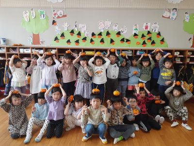 年長組は、カボチャに顔を描いて楽しみました。後日、はなふるに飾られましたよ
