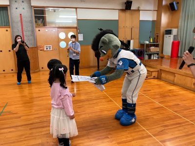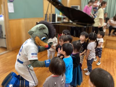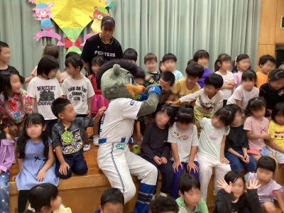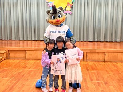 日本ハムファイターズのマスコット「B・B(ビービー)」とファイターズガールが来てくれました!