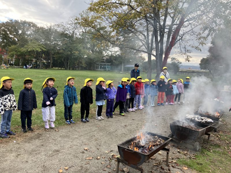 年長組~モクモク煙が上がり、焼きあがるのを楽しみに待ちました。