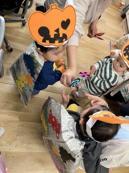 0歳児クラス、1歳児クラスでハロウィンごっこをしました!