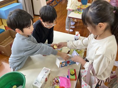 子どもたちが製作したおもちゃを使ってお買い物ごっこをしました!