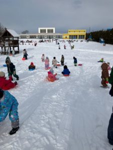 子どもたちはたっぷり雪あそびができて嬉しいのかも?!